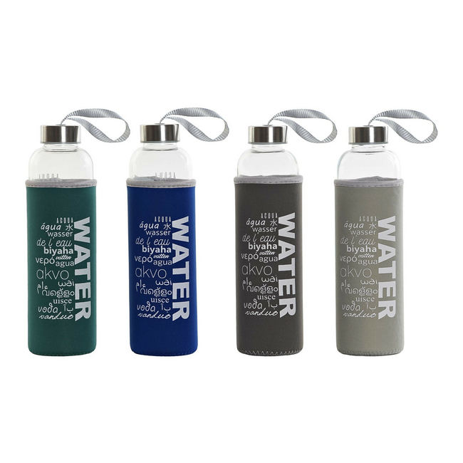 Botella de cristal, con funda de neopreno, de 600 ml de capacidad. Cuatro colores a elegir una.