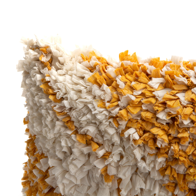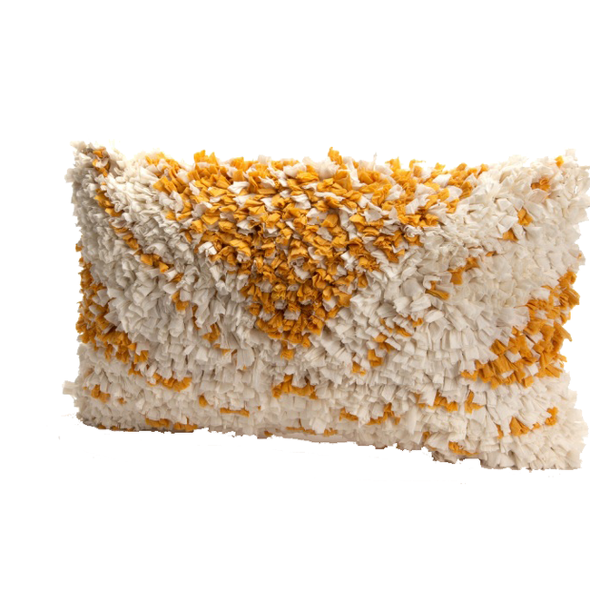 Cojín con relleno con terminación en flecos de algodón. Ideal como cojín detalle.