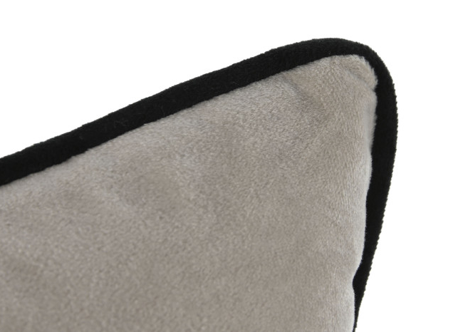 Cojín de terciopelo en color beige con ribete negro. Básico con estilo.
