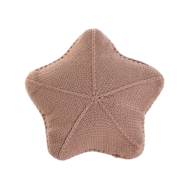 Cojín poliéster tejido a mano, con forma de estrella en color rosa viejo