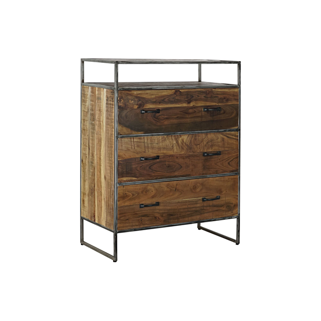 Cómoda en madera de acacia y metal, se hará fácilmente un hueco en tu decoración moderna.