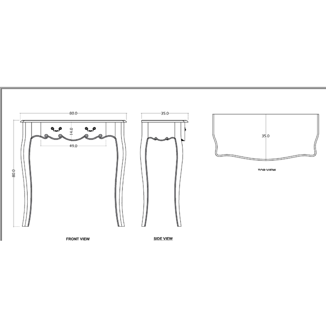 Preciosa consola de estilo romántico provenzal, en color blanco roto, con cajón.