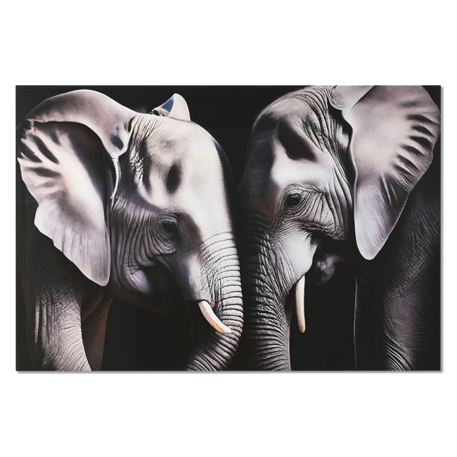 Impresionante cuadro de cristal templado fotoimpreso, con motivo de elefantes.