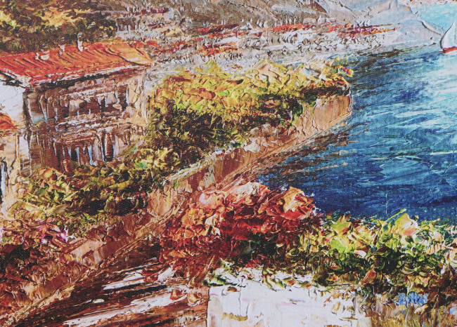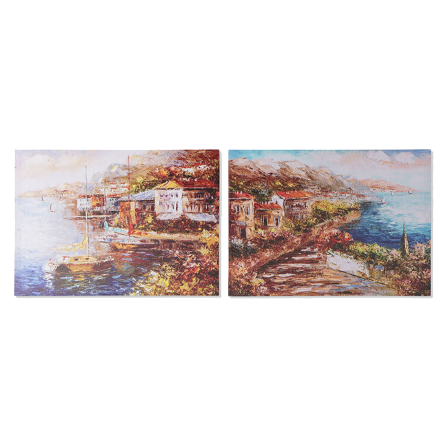 Lienzo sencillo impreso de pueblo costero
