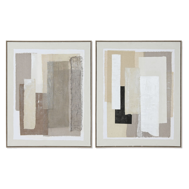 Cuadro enmarcado sobre lienzo en tonos naturales, con tramos de yute.