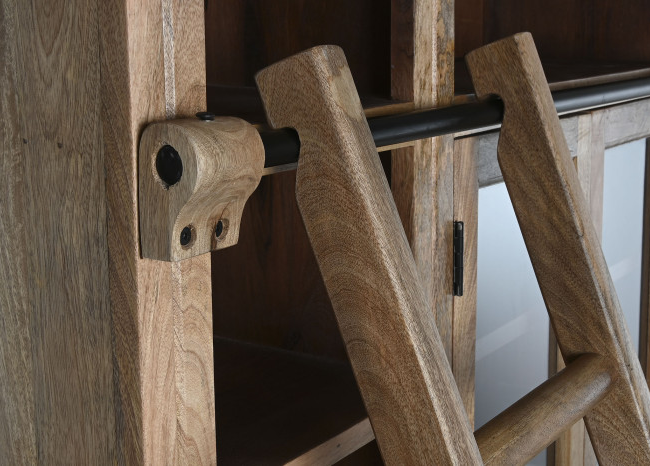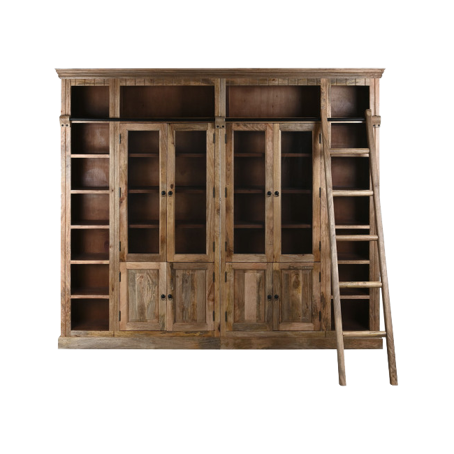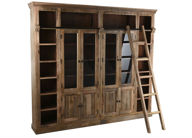 Espectacular estantería librería con múltiples usos en madera de mango. Incluye escalera.