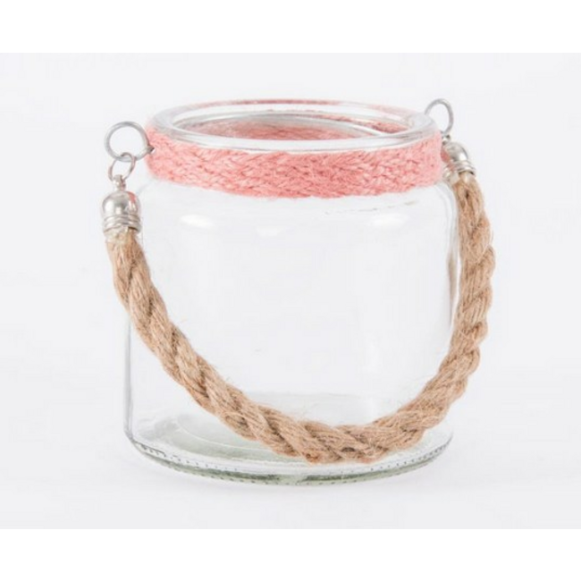 Portavelas decoración revestido con cuerda y asa