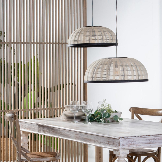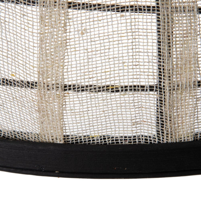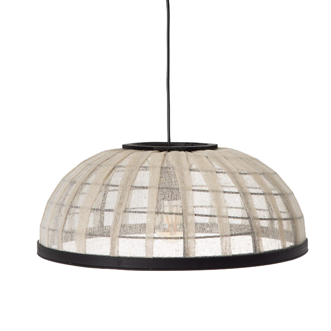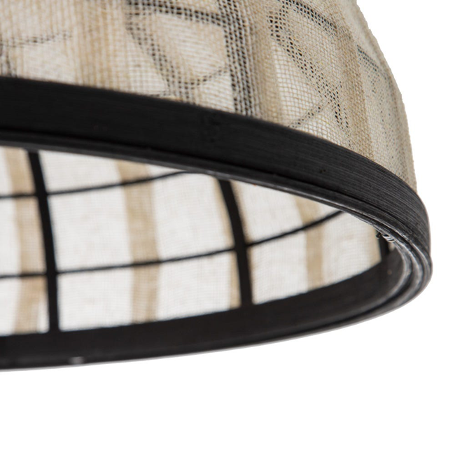 Lámpara de techo en bambú y tejido, combinando el color negro con crema.