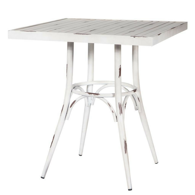 Mesa de estrilo vintage, en metal color blancom con toques envejecido.