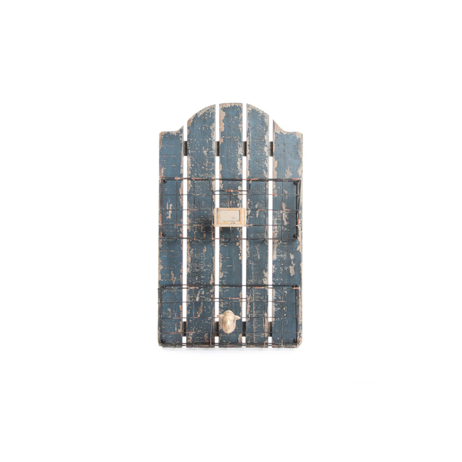 Pequeño estante decorativo de pared en madera con acabado envejecido.