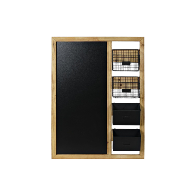 Pizarra negra con marco de mdf, y cestitas para guardar cosas.