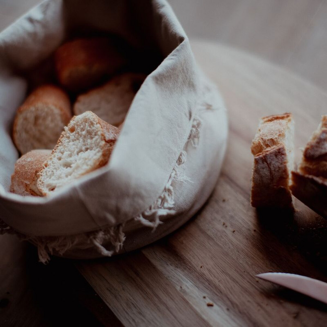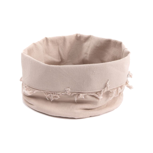 Panera de tela natural desflecada.