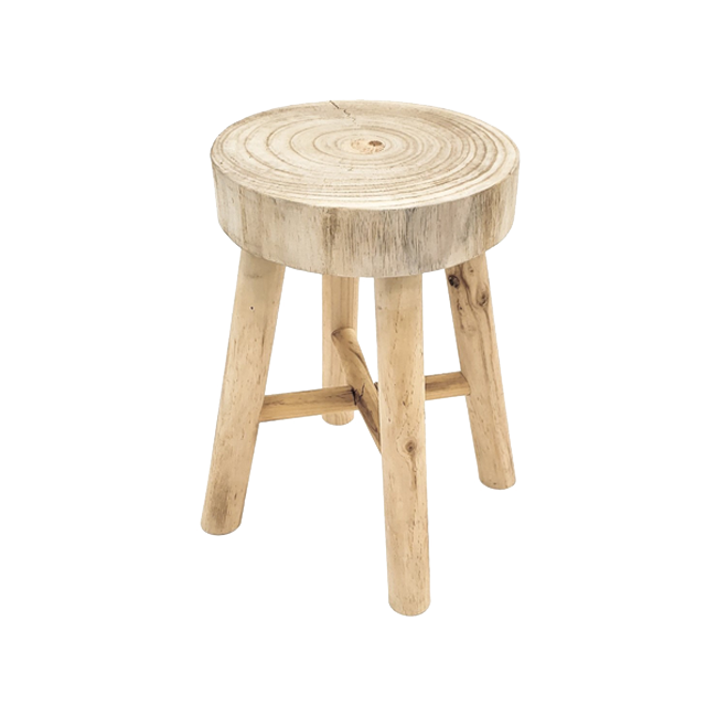Taburete de madera maciza tostada. LLena tu casa de toques naturales