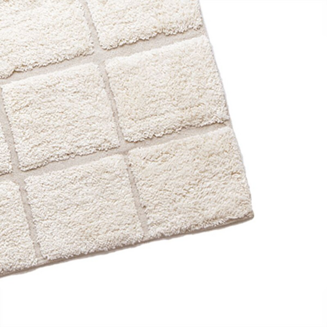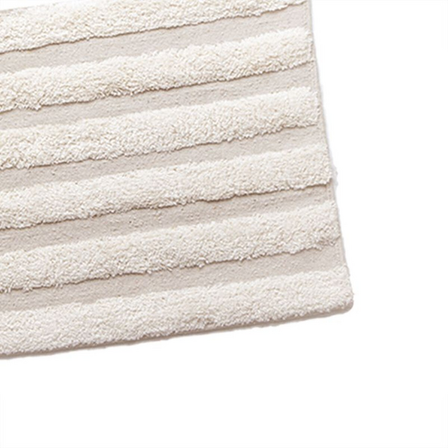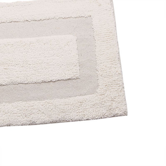Alfombra de baño textil, con dibujo en relieve, de color crudo. 3 modelos a elegir.