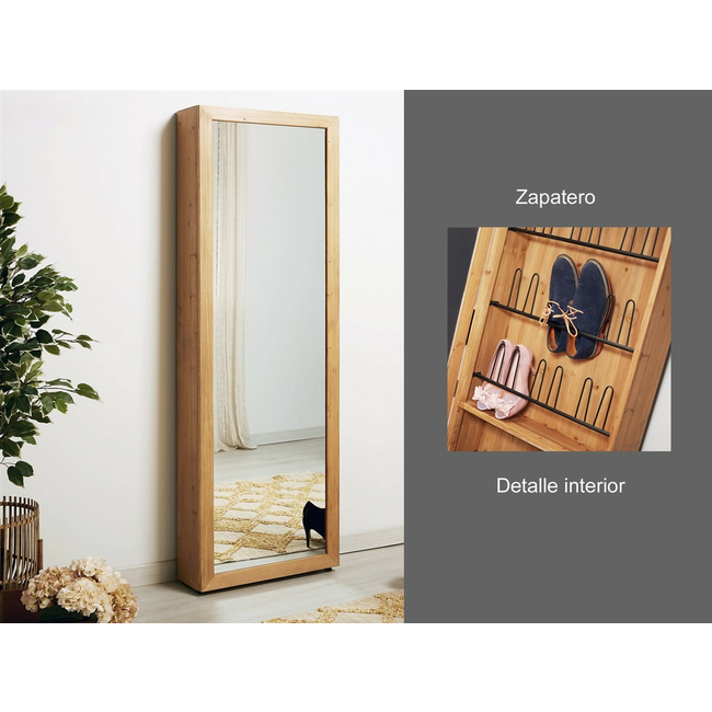 Espejo tipo vestidor con zapatero interior. Tiene una capacidad para unos 18 pares de zapatos.